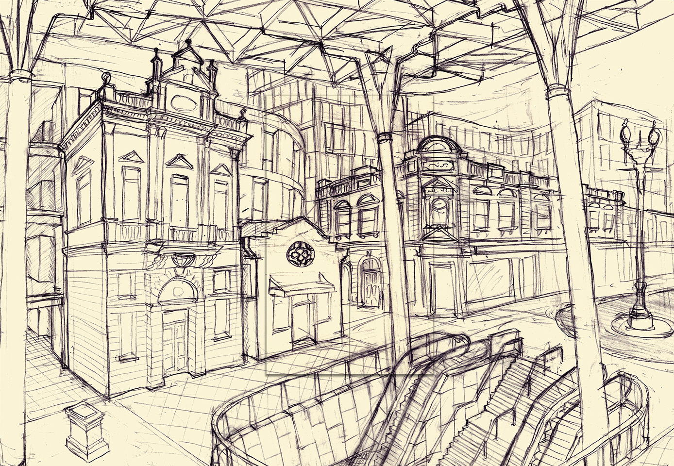 Audiences will be greeted by a large scale, drawn-up composite image of selected Bathurst heritage buildings combined with futuristic ones that reflect the ongoing and projected demographic changes taking place in our region. Two IKEA doors, the outside covered with the urban imagery of a future Bathurst and the inside with a scenic image of the Central West countryside will be aligned with and mounted on top of imagined future streetscape image.